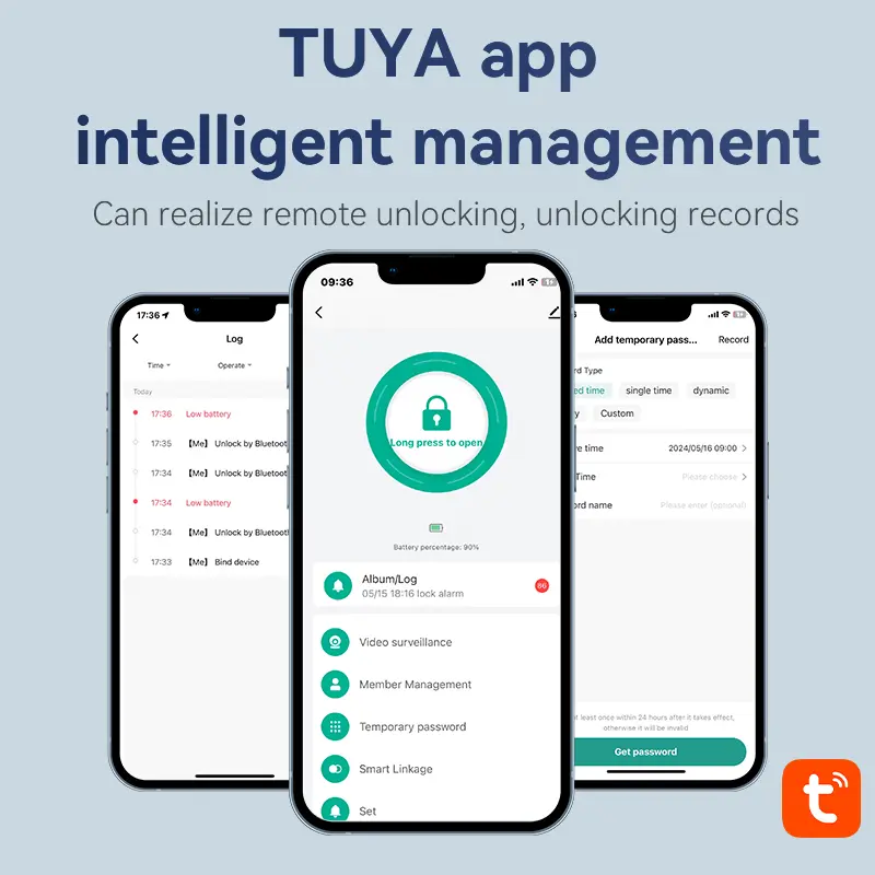 - Vzdálené odemykání chytré aplikace: Klepnutím odemknete na dálku prostřednictvím speciální aplikace pro snadný přístup hostů a správu domácnosti.